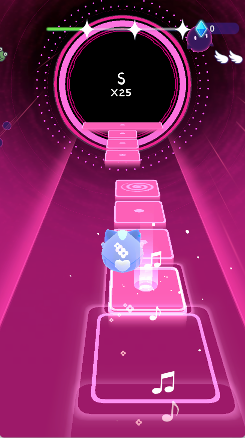 2、操作方式为滑动操控小猫移动方向,需踩准音乐节拍,让小猫准确跳至下一个音乐方块。