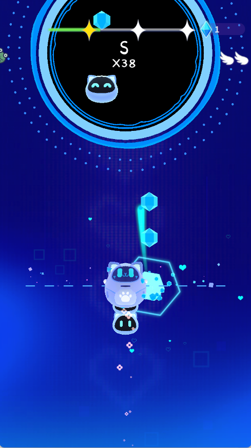 3、游戏中可聆听猫猫美妙的歌声,音乐节奏决定跳跃时机,考验玩家对节拍的把握能力哦。