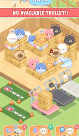 猫咪盒子拼图是一款充满治愈感的休闲益智游戏!玩家需要从各式各样的盒子中挑选出与手推车颜色匹配的彩色猫咪,猫咪颜色和盒子布局会逐渐复杂,无论是猫咪可爱的造型,还是完美匹配时的成就感,都能让你沉浸其中,享受整理与配对的乐趣!